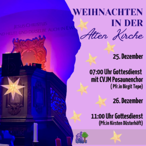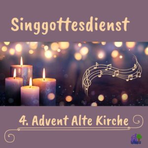 Wir laden Euch herzlich zum Sing-Gottesdienst am 4. Advent (21. Dezember) um 10:00 Uhr in der Alten Kirche mit Pfarrerin Birgit Tepe ein. Mit dem Chor „Frohsinn“ werden die Adventslieder gesungen, welche sich die Gottesdienstbesucher wünschen. Der Gottesdienst folgt keiner Liturgie, die Verkündigung wird unser Gesang sein. Alle Kinder können