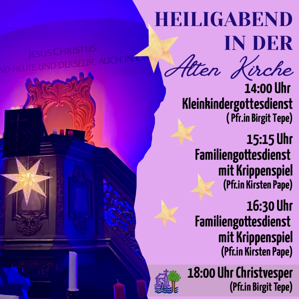Heiligabend 15:15 Uhr Familiengottesdienst mit Krippenspiel mit Pfarrerin Kirsten Pape (Einlass ab 15:05 Uhr)