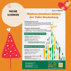 Wollt Ihr vor Weihnachten schnell noch etwas Gutes tun und Freude verschenken? Dann packt doch eine Weihnachtstüte für die Tafel. In die Tüten kommen ausschließlich haltbare Lebensmittel, mit denen die Empfänger ein komplettes Weihnachtsessen zubereiten können. Natürlich können auch Beigaben in die Tüte gelegt werden wie Familienrezepte, eine Weihnachtskarte, Servietten,