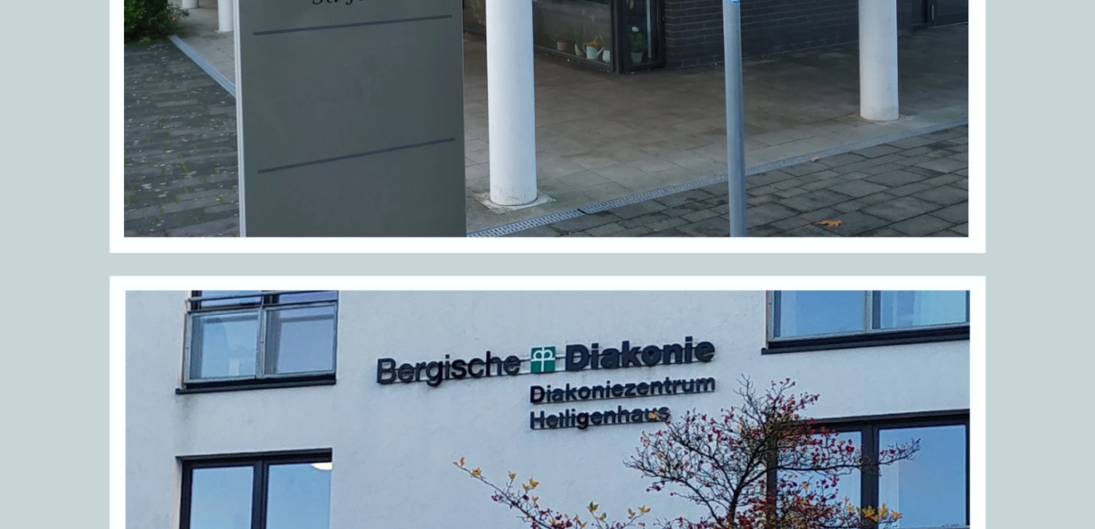 Ev. Diakoniezentrum Heiligenhaus, Schulstraße 2: Evangelischer Gottesdienst an jedem Freitag um 10:00 Uhr, Katholischer Gottesdienst am 3. Freitag im Monat um 10:00 Uhr. Kath. Seniorenzentrum St. Josef, Rheinlandstraße 24: Evangelischer Gottesdienst am 3. Donnerstag im Monat um 16:00 Uhr